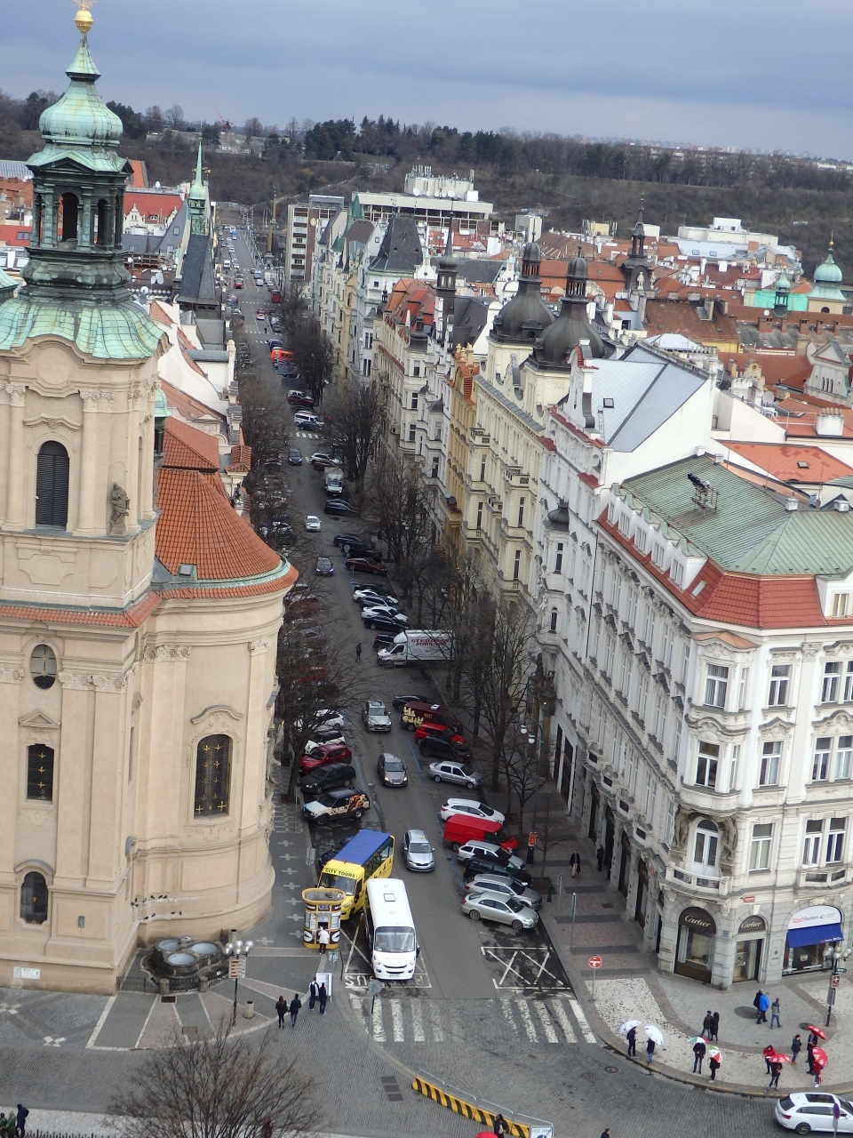 旧市街広場の一角にある白壁のバロック様式の教会・聖ミクラーシュ教会に向かって、広場を背にして右手にまっすぐに伸びて、チェコ橋までつながる通りがパリ通りです。
