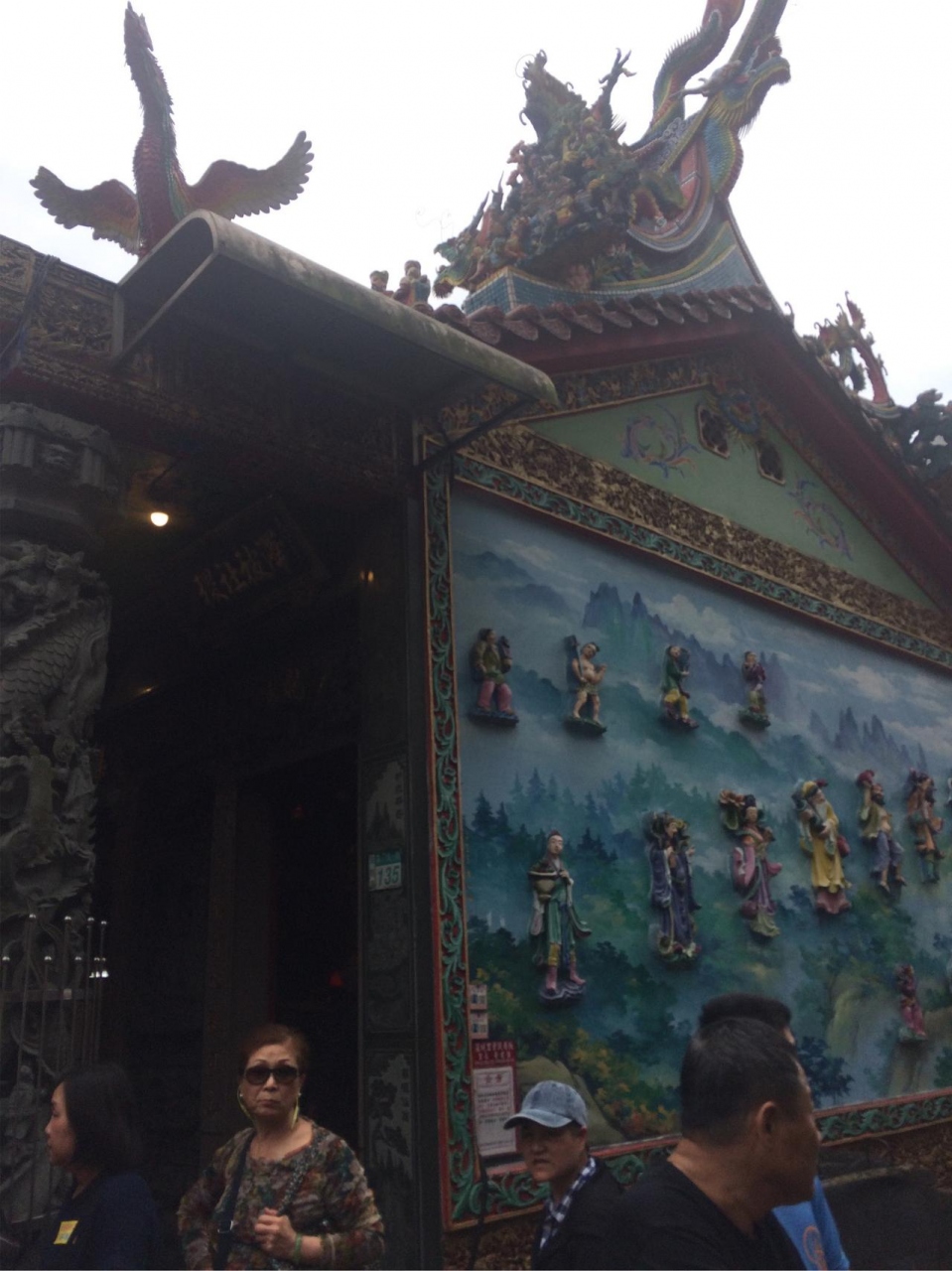 シェンクン老街にある寺 です。ちょうど深坑老街を歩いていくと真ん中へんにあります。このお寺の前にある臭豆腐の屋台(おばちゃんが経営)の臭豆腐が結構おいしいです。並んでます。お寺の周りで皆串にさした豆腐を食べています。
