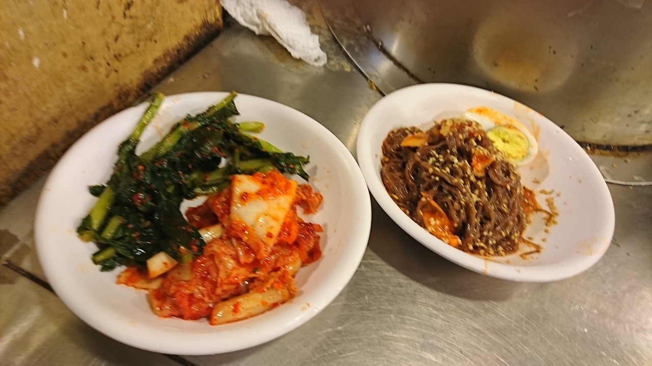 ソウル地下鉄4号線会賢駅から徒歩すぐ。カルグクス横丁にあるお店の一つ。お店の名前をハングルで書くと「남해식당」で、「南海食堂」と漢字でも書いてあります。お店を仕切る女性3人(姉妹?)が元気よく、手際のよいお店。カルグクスやビビンバがメインで、キムチとビビン麺(それほど辛くない)がつきます。カルグクスは手打ち麺でその場で作っていて、注文後茹でます。作りたて、茹でたての麺は、モチモチしていて美味。塩味もちょうどよく辛くないので、日本人にぴったり。海苔の風味がマッチしています。ビビンバだとカルグクスもつくからそちらの方が得かな?次回はそちらにしようと思いました。
