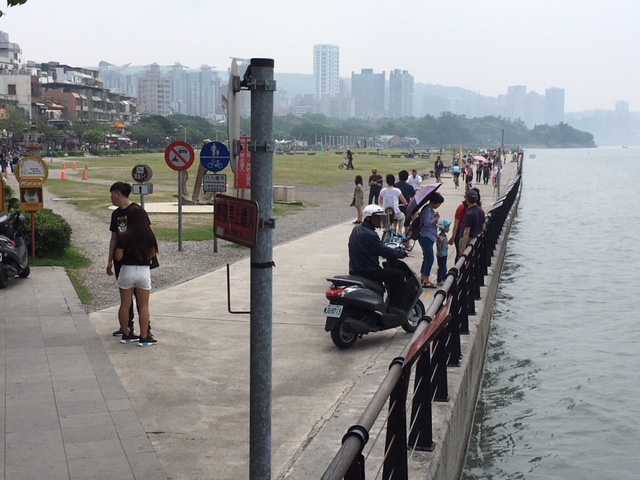 台北の北側にある夕陽で有名な淡水の海岸沿いに整備されたサイクリングロードです。あまり自転車は走っておらず、観光客が多く歩いていました。一部はボードウォークのような感じになっています。対岸の八里にも同じようにサイクリングロードが整備されていました。