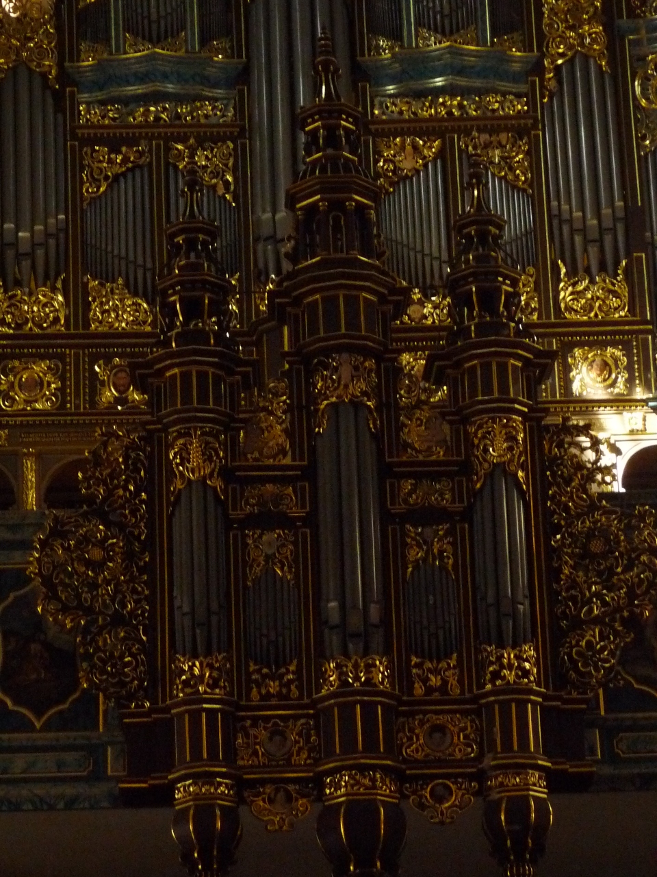 パイプ6000本、16世紀の木彫り彫刻付きパイプ・フレーム、、、見た目も非常に鮮やかなパイプオルガン。この教会のウリ。