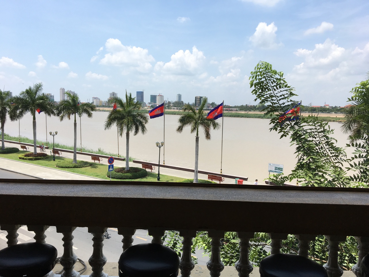トレンサップ湖から流れる悠々とした流れの中を、貨物船や小さな船が上り下りる様子を、遊歩道沿いにあるレストランの三階の窓から、眺めていると心が癒されました。アンコ一ルビ一ルを傾けて、川からの風を浴びると最高です。