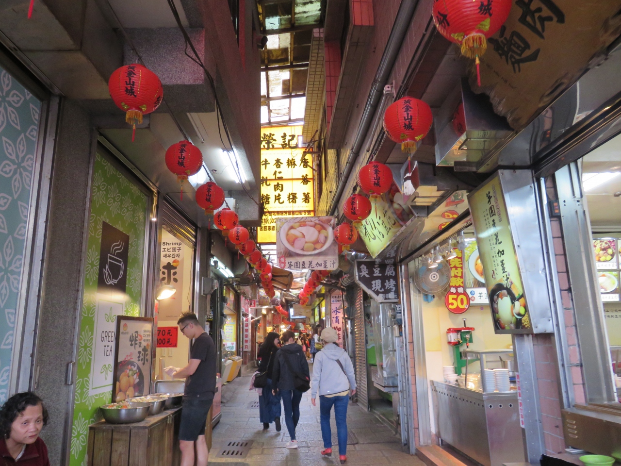 狭い路地の両側には、飲食店やお土産屋さんが建ち並んでいて、