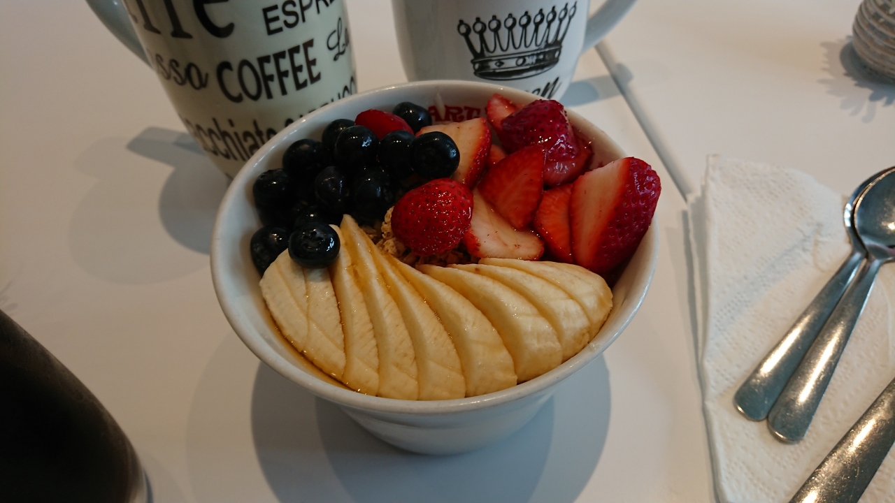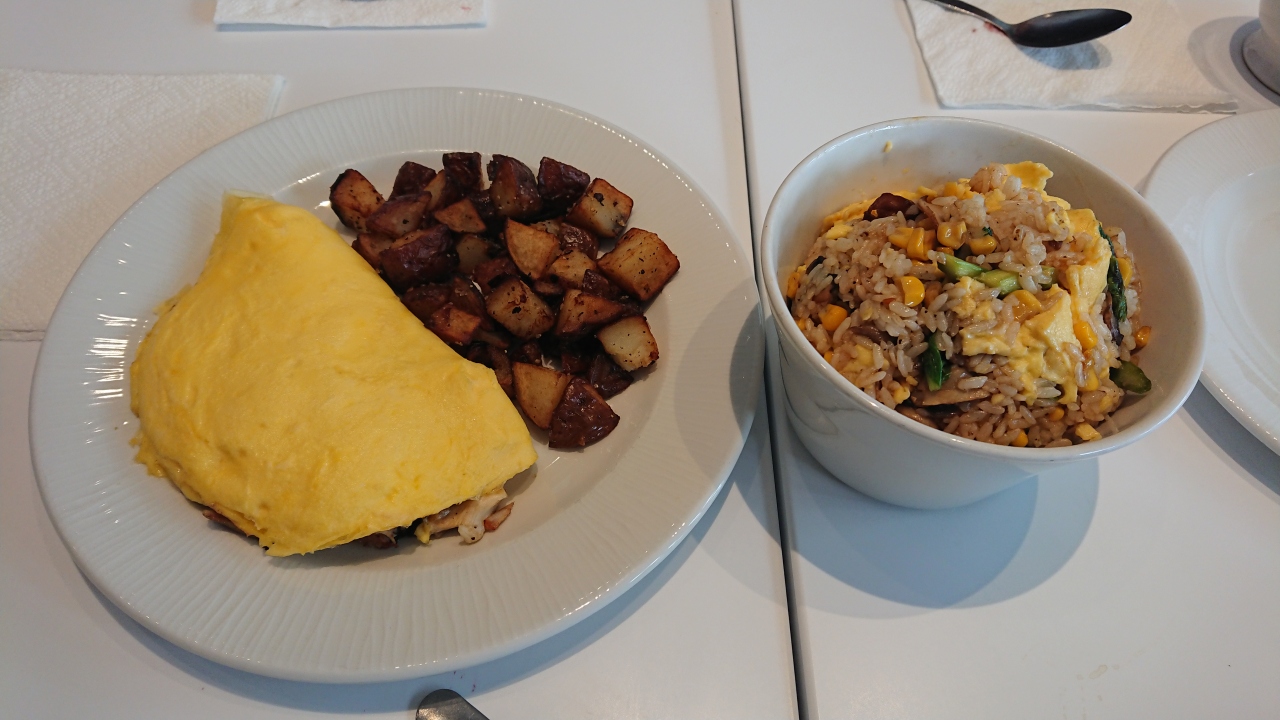 さて、エッグベネディクトも有名ですが、ブーツ&キモズで食べたので、オムレツとアサイーボウル、それに、お店の人がお勧めと言っていたチャーハンを注文。