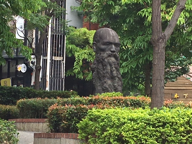 紅毛城から色々な洋館に立ち寄り、坂を降って淡水のメインストリートの中正路に出ました。MRT淡水駅の方向へ歩いて行くと、小さな公園のような場所があり、そこにこの馬偕博士の像がありました。面白い形をした像で、とても興味深かったです。