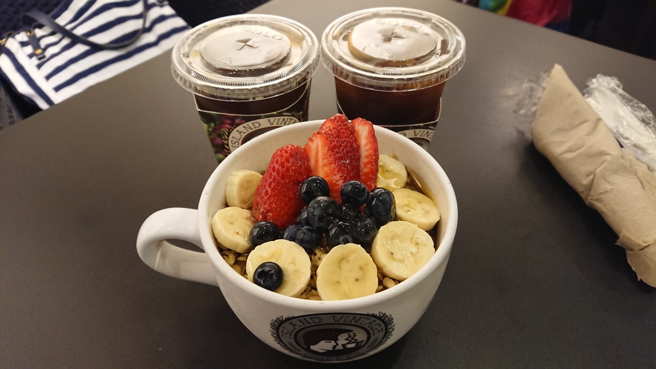 まず、アサイーボウルが美味しいお店、と聞いてましたので、アサイーボウルを頼んでみました。イチゴがとっても甘くて、グラノーラの歯ごたえともよく合います。一人で食べるには量が多いため、みんなでシェアすると良いかも…ですね。