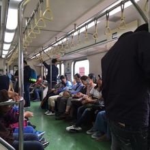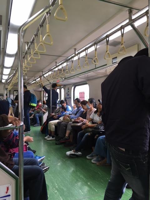 九份に電車で行きました。空港で 悠遊カードを購入してあったので、切符を買う必要がありませんでした。快速や特急列車もありますが、各駅停車に乗りました。約一時間くらいで到着しました。ごく普通の電車です。想像以上に混んでいて座ることができませんでした。待ってでも、座って行くべきでした。