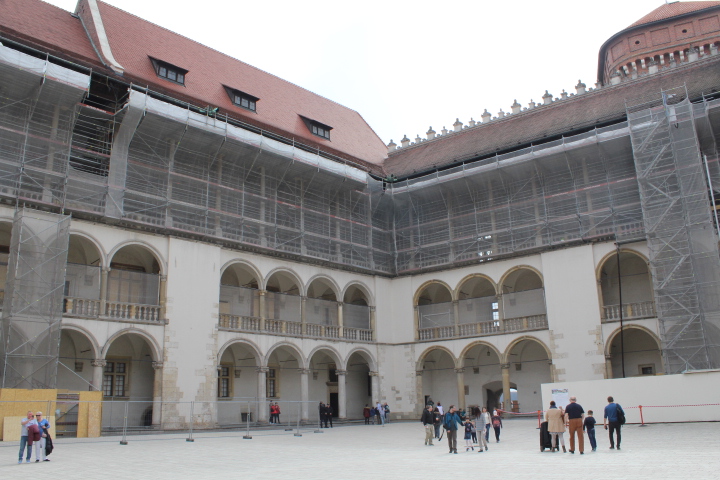 ヴァヴェル大聖堂のサイドからピンク色の建物の下を通ると、
