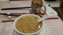 お粥にしようと思いましたが、このお店のワンタン麺は、結構評判という事で、思い直しワンタン麺にしました。ミルクティーが付いて35香港ドルです。スープはあっさりながら優しい味で、う~ん、美味しいですね。ワンタンも柔らかく中身の海老も美味しいです。