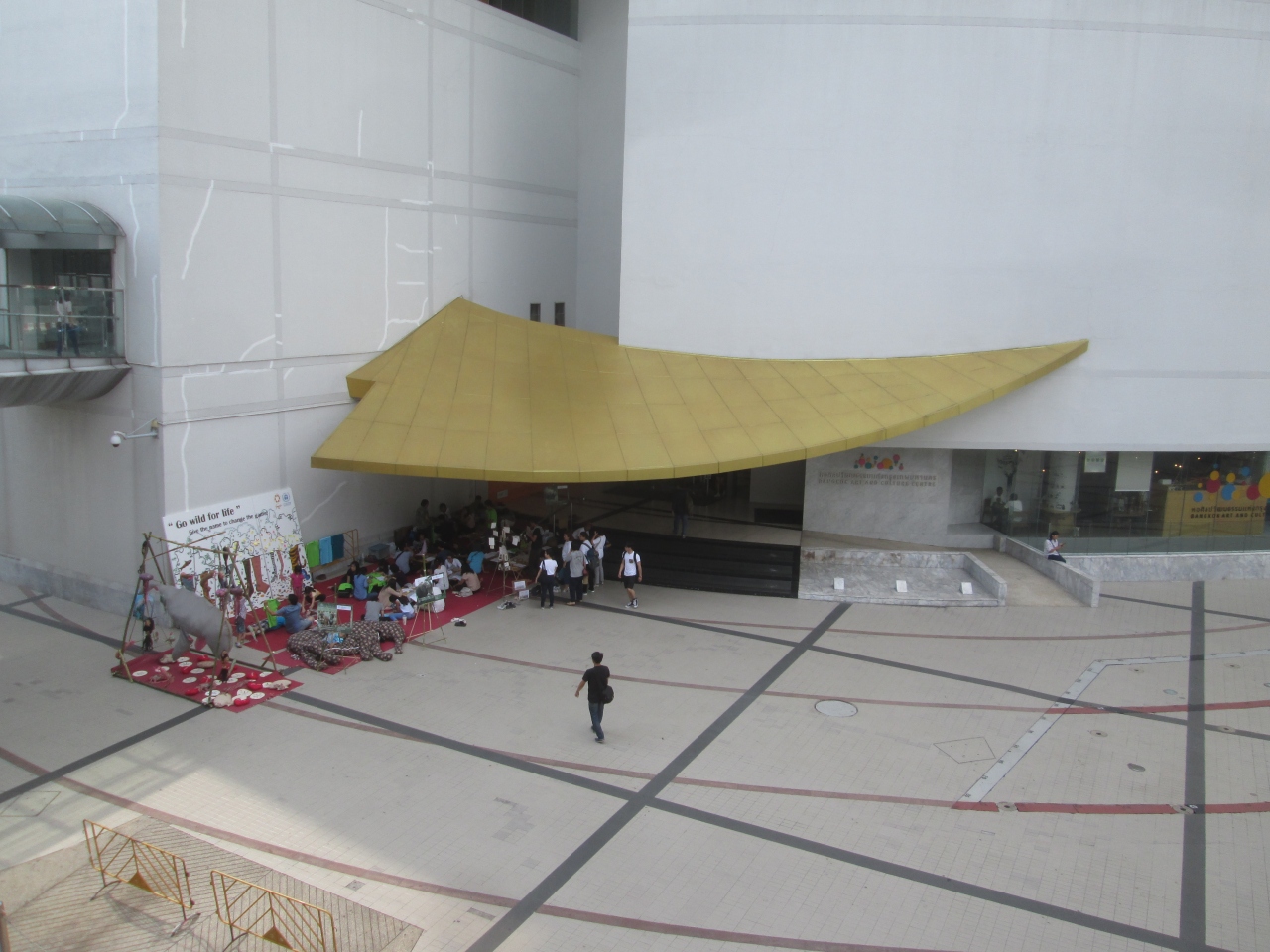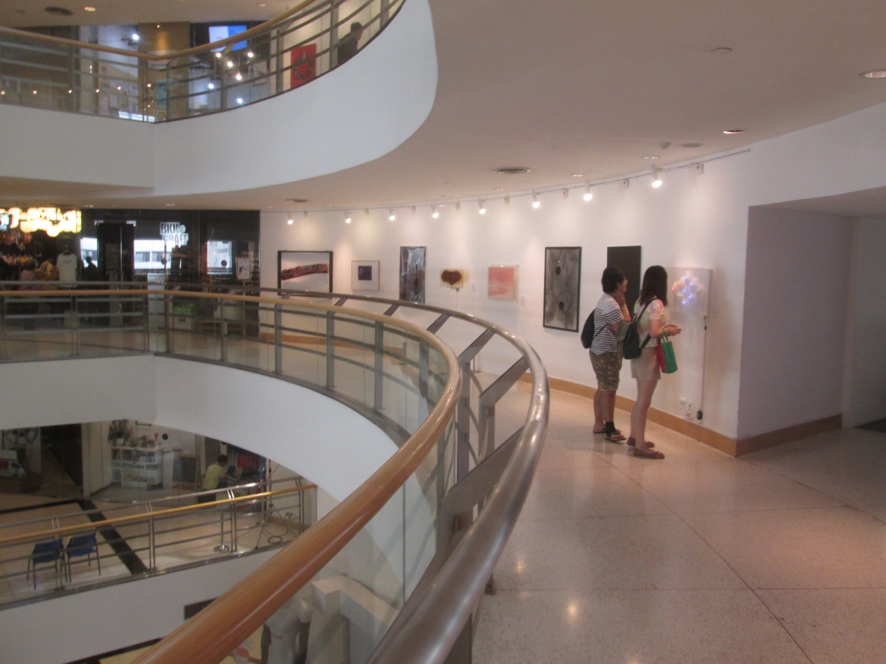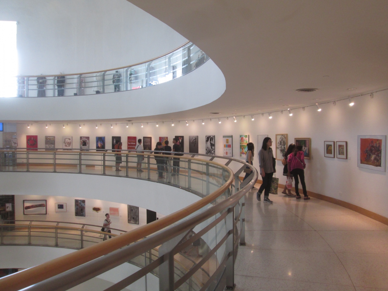 1階の入口から入ると、中は吹き抜けになっていて最上階まで見上げることができる迫力の空間でした。5階の展示室は荷物の持ち込み制限があり撮影禁止ですが、それ以外のエリアは撮影が可能で、壁に飾られている絵のなかにお気に入りがあれば撮影できました。