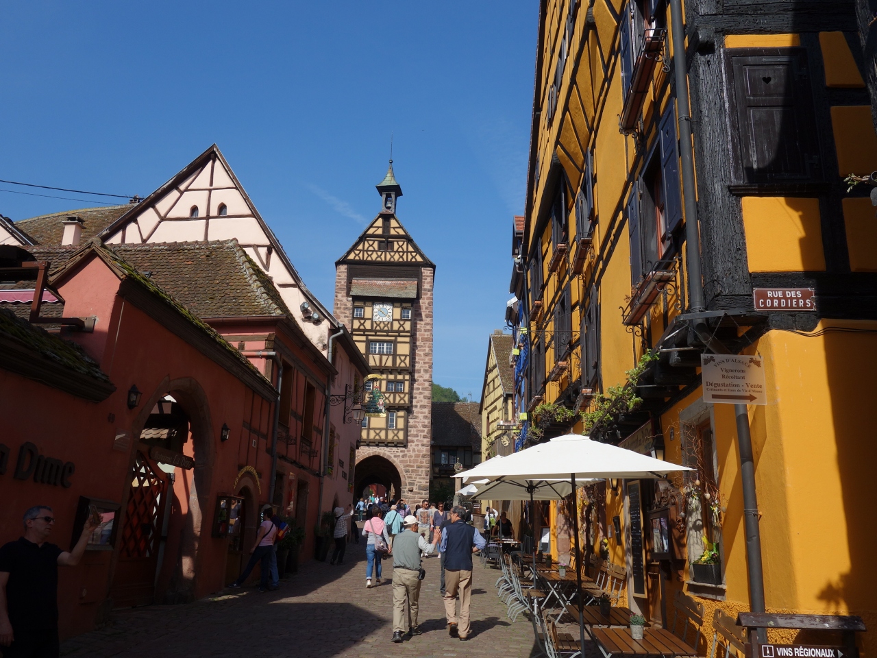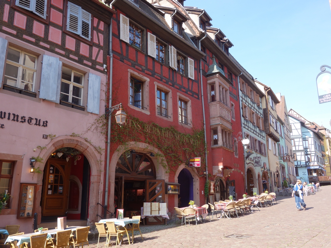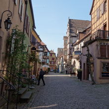 「フランスの美しい村」のひとつです。名に違わず,とても美しい街です。コロンバージュの建物が並ぶメインストリートにみやげ物店やレストランが並んでいます。ほぼこの一本のストリートで観光はつきます。村の周辺は丘陵地で,ブドウ畑になっています。アルザスの「美しい村」です。
