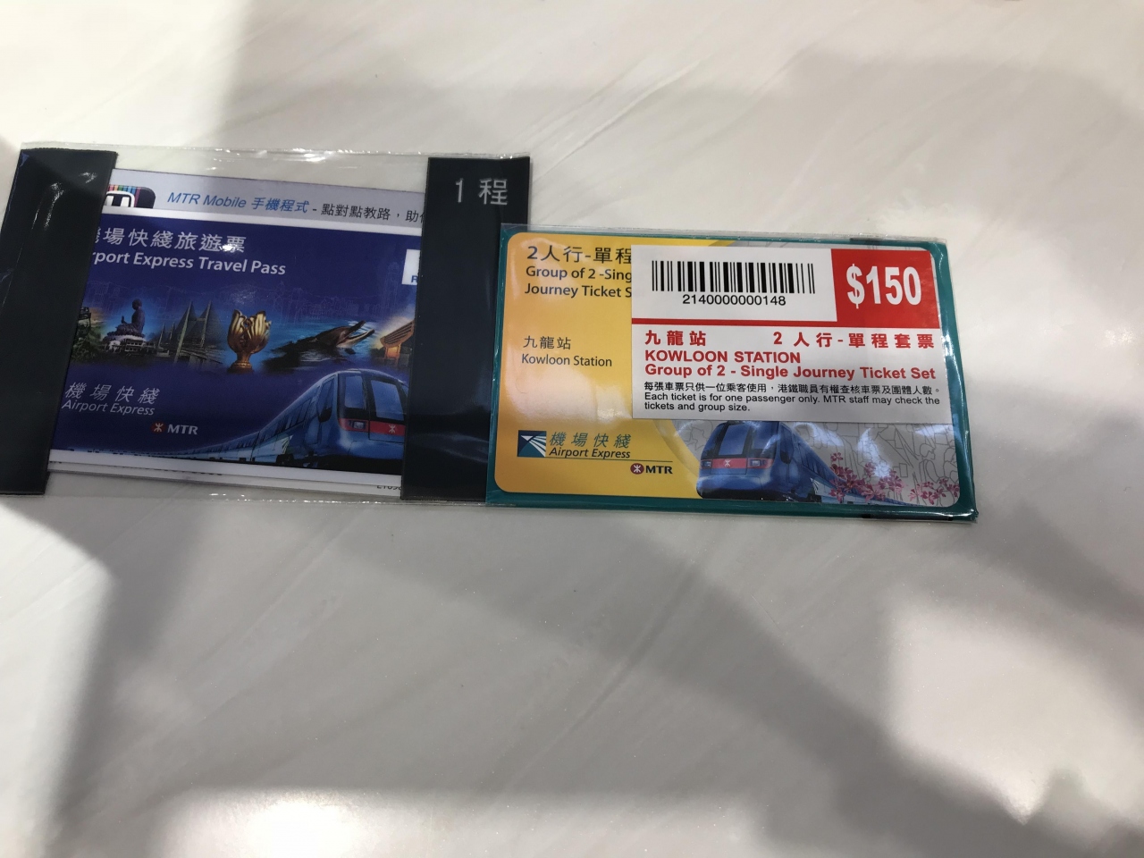 2人カオルーン駅往復チケット代150HKD 3日メトロ乗り放題付けて、2人で500HKD.(最終的に100HKD返金あり)