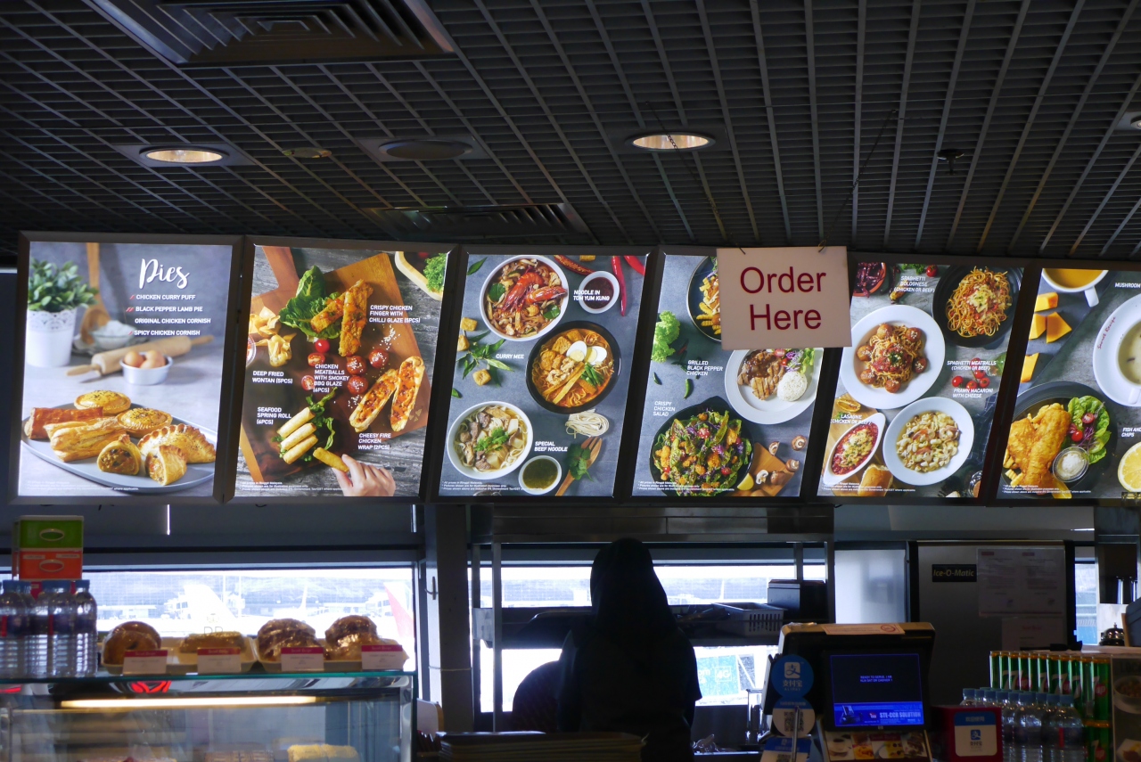 ケーキ類がショーケースに入っており、食事メニューは豊富で、フィッシュ&チップス、サラダの他カリーミーなどのマレー料理を扱っていました。