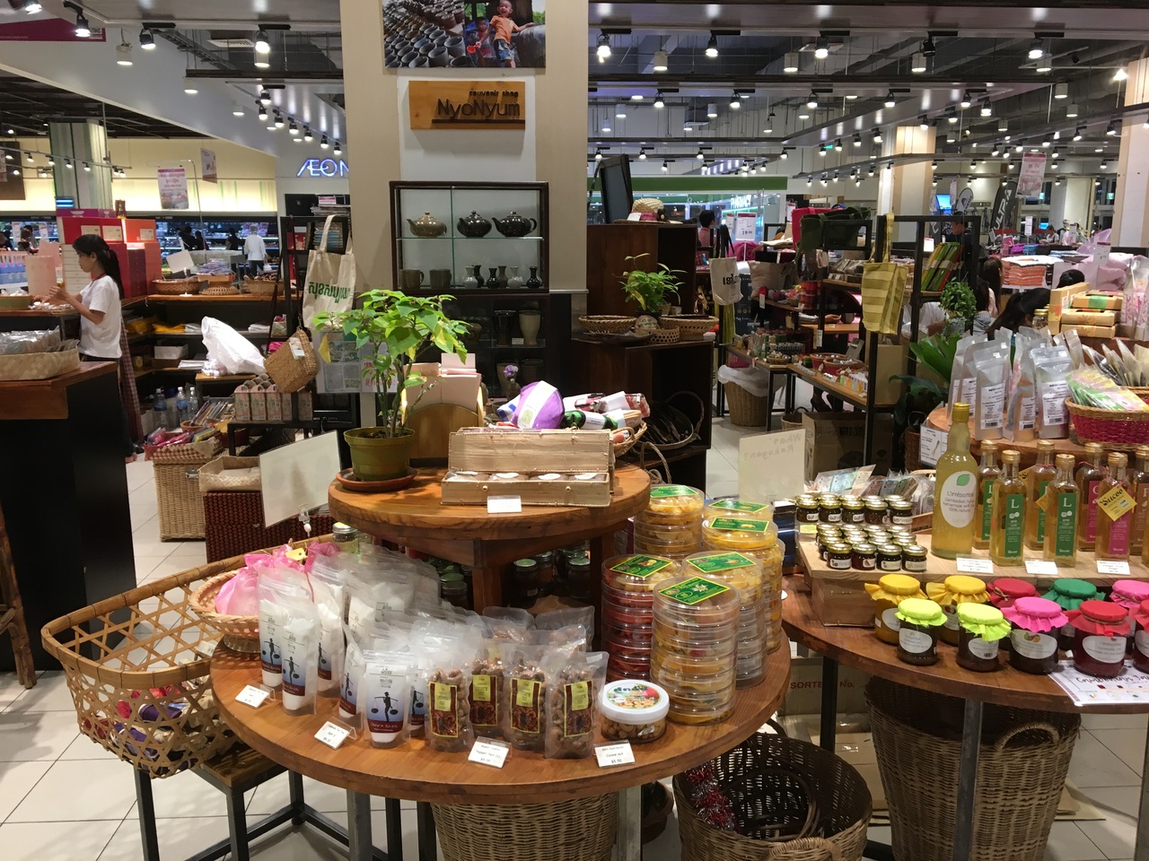 イオンショッピングモールの中にある、お土産ショップの支店です。クッキー、コショウ、スカ一フ類等、気の利いたお土産が並んでいました。コンポンチュナン焼もあり、日本語での解説もありました。イオンの直営コ一ナ一に隣接しているので、値段の比較もできました。