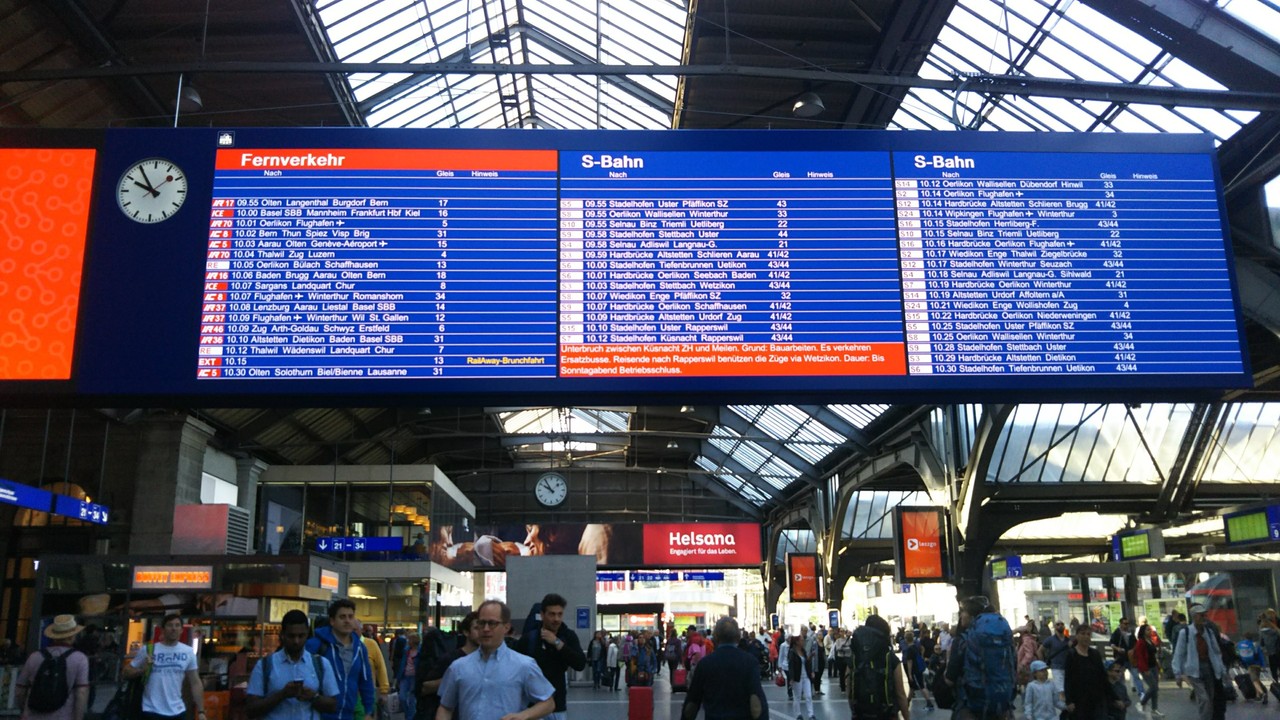 非常に大きな駅です。中央付近には大きな掲示板があり、どこのプラットフォームからどこ行きの列車が何時に出発するのかが明確に表示されています。また、小さなモニターもあちこちに設置されていて、そこでも同じ情報を確認することが出来ます。プラットフォームにもその列車の行き先などが分かりやすく提示されているので、全く迷うことなく親切な駅だなと思いました。