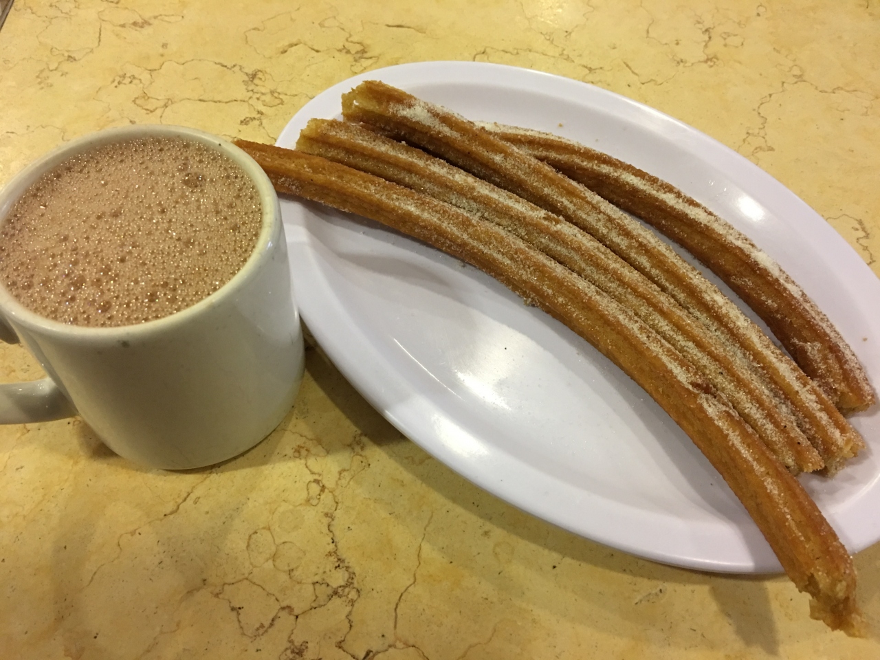 どんなに甘いのかとビクビクしていたチュロス、生地には砂糖を入れないのですね。意外とさっぱりとした味わい。上掛けの砂糖だけが甘いです。それでも二本片付けるのが限界でした。
