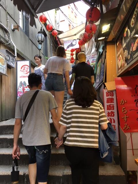 九份のメインストリートは基山街とこの豎崎路です。基山街が基本的に緩やかに登ったり下ったりしているのに対し、豎崎路は長い階段です。途中、基山街と豎崎路が交わるところから、豎崎路を上に登りました。約5分ほどで頂上に着きました。坂の上には小学校がありましたが、休日なので閉まっていました。