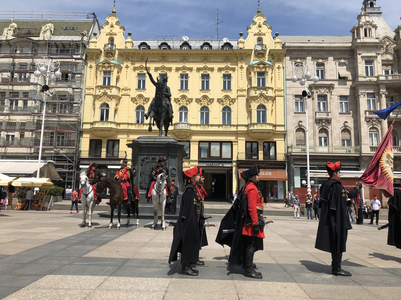 ザグレブ旧市街の各名所から下ってくるといきつくのは、このイェラチッチ広場。この広場の名前にもなっている、ザグレブでは人々の英雄である、イェラチッチ総督の銅像がある。また、トラムの起点ともなっている。運のいいことに 毎週日曜日に行われる 衛兵交代式を見ることができました。