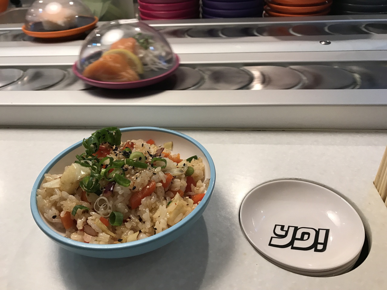 日本食が恋しくなったので入りました。ロンドンは日本食レストラン多かったな。日本の回転寿司を想像して入ったら値段が高くて驚き!買い物あとだったからチャーハンだけ頼みました。(安いやつ。)味は洋風かな。胡椒がよく効いてた。隣で盛り上がっていると思って見てたら、手巻き寿司の講座をやってた。カウントダウンしながら巻いてて楽しそうだった!日本とは味も値段も違っても良いならおすすめです。