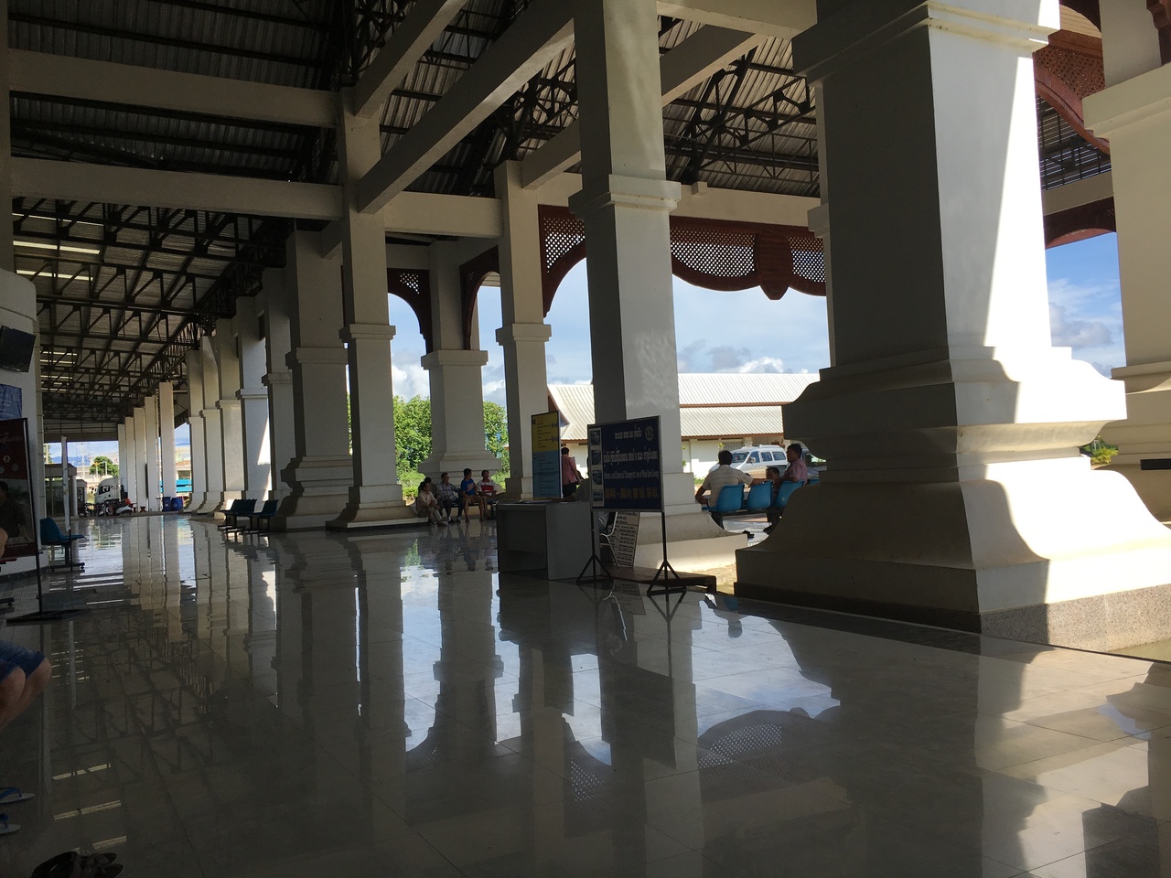 日本人はラオスビザ不要なので、アライバルビザに並ぶ欧米人達を横目にスイスイ手続き…のはずだったのですが、私はのんびり対応の両替でてこずってしまい通過に時間がかかってしまいました。また、どこにあるのかわからなかったのですが入国カードへの記入も必要なので注意です。