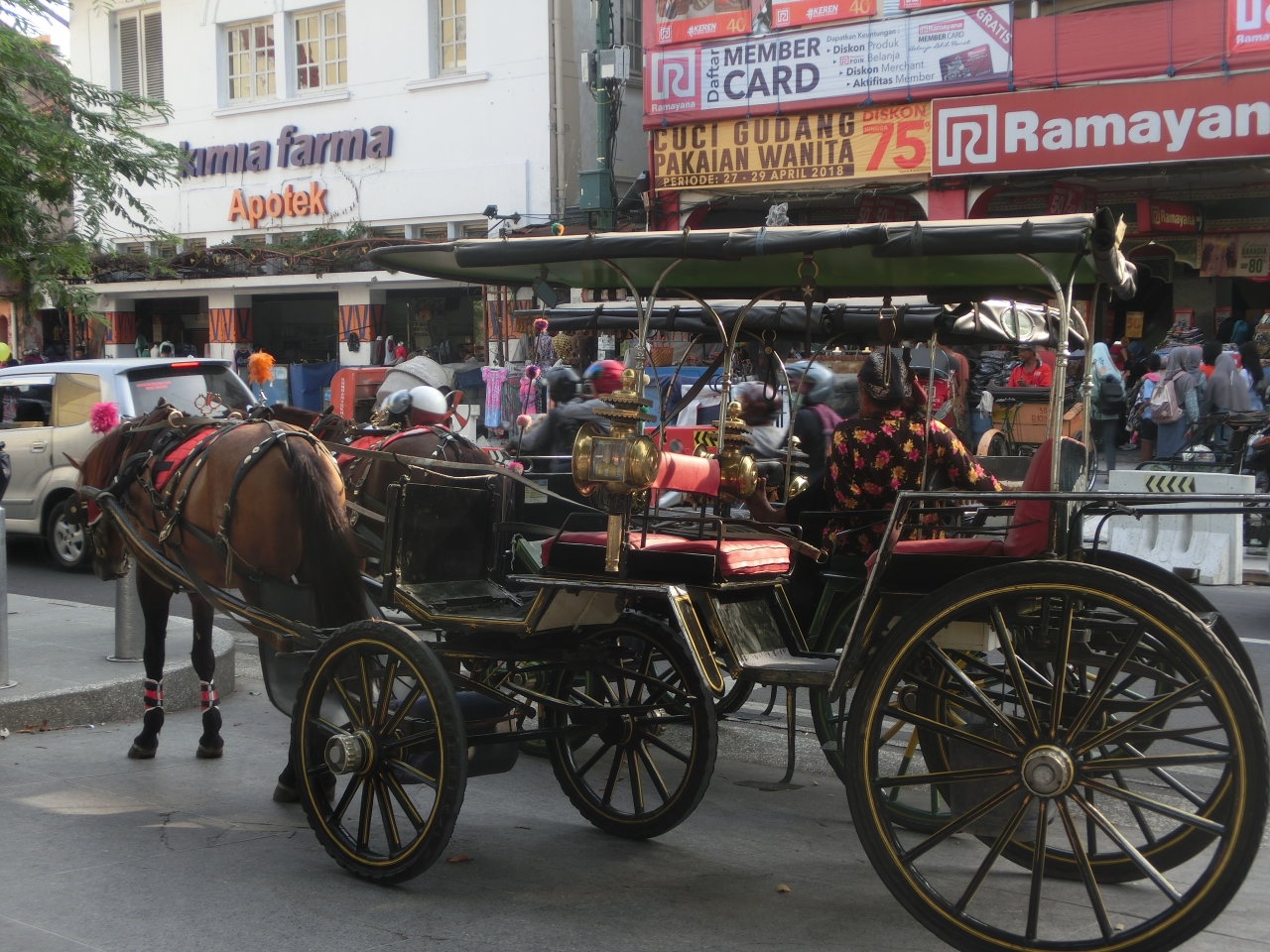マリオボロ通りは露天や屋台もあり、観光用馬車もあり、ブラブラ歩くには楽しいです。お土産屋も沢山あります。ジョグジャカルタのメインストリートです。