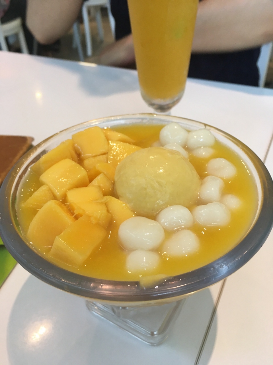 パビリオン内でランチをしようと鼎泰豊を目指しているときに、同じフロアのエスカレーター付近に発見。ランチの後に寄り、マンゴーとアイスと白玉が入ったスイーツを堪能しました。ひんやり感とフレッシュな甘さが食後のデザートにピッタリでした。ショッピングの合間の休憩にもよいと思いますが、時間帯によっては大行列です。