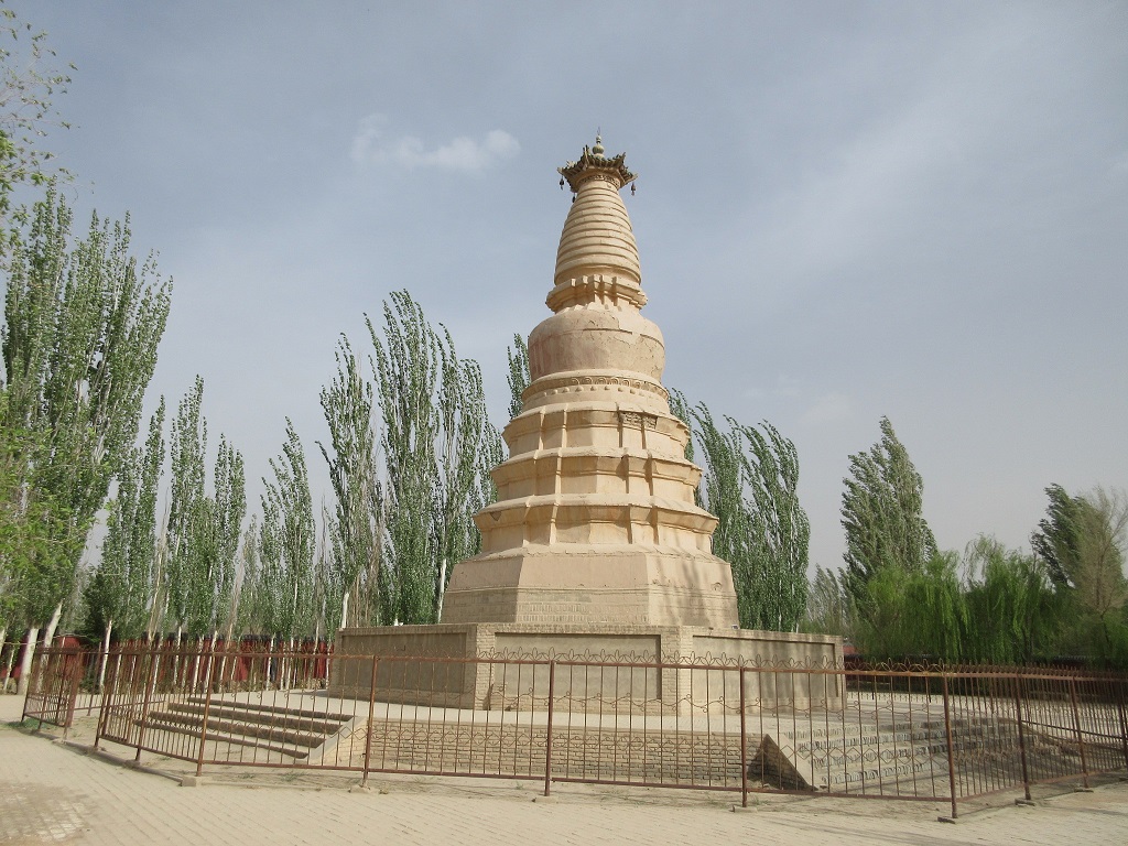 敦煌の中心から1路の路線バスでアクセスすることの出来る覆鉢式の白亜の仏塔です。亀茲国出身の僧である鳩摩羅什(クマラジーバ)が敦煌を訪れた際に、経典を積んでいた白馬が死んでしまったことから、この場所に建立されたとされています。橋を渡った先のバス停で降り、柳の木の先にある細い路地を300mほど進んだ先左手にあります。私が訪問した際には他に見学する観光客もおらず、風にそよぐポプラの枝と相まって旅情を掻き立てられました。