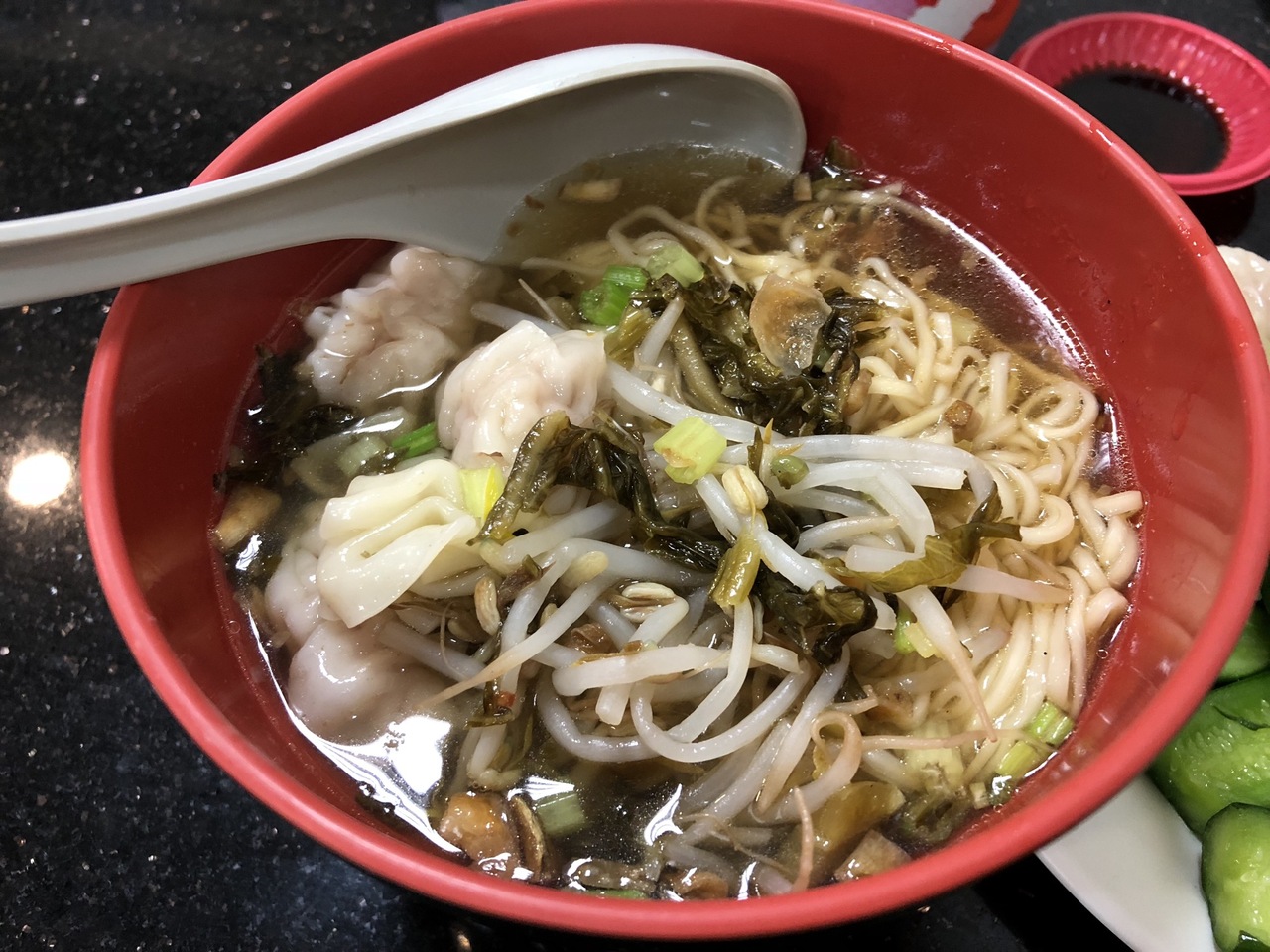ワンタン麺にはモヤシと高菜も入ってて、これも美味しかったです。