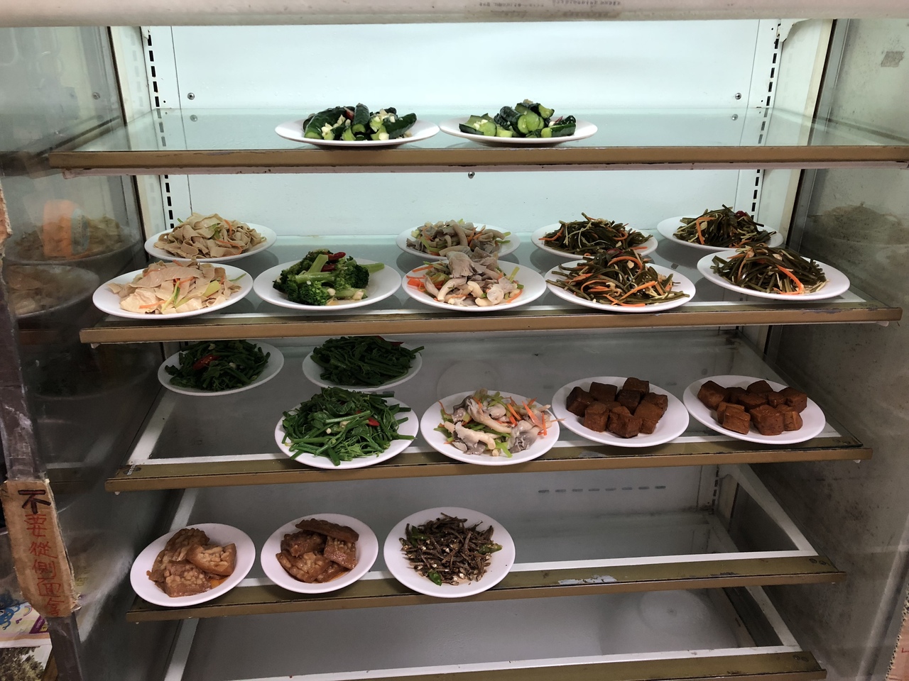 青菜、タケノコやナス、キュウリなどの冷たい小皿料理もあり、