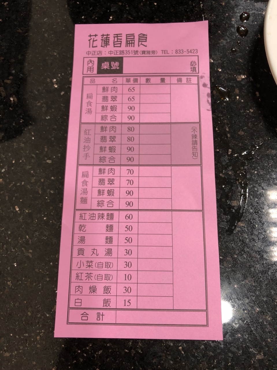 ここには注文票があり、入り口で店内用のピンク色のを取り