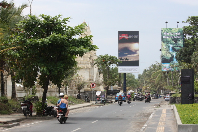 レギャン通りでの観光よりもバードウォッチングの方が興味があったので、レギャン通りを海と反対方向にブラブラ歩いてみました。椰子の木や名も知らぬ街路樹も見られましたが、色々な野鳥も見られました。その中でも日本では見られないメグロヒヨドリが何度も見られました。