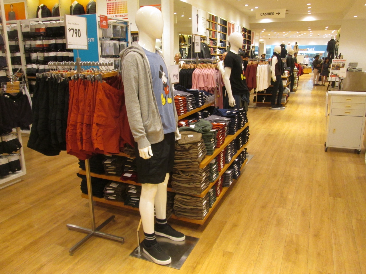 モールオブアジアのユニクロではミッキーマウスの象徴的なスタンディングポーズがプリントされたTシャツやトレーナーが販売されていました。日本では見かけないデザインでした。ディズニーランドがない国ですが、フィリピンではミッキーが人気のようでした。