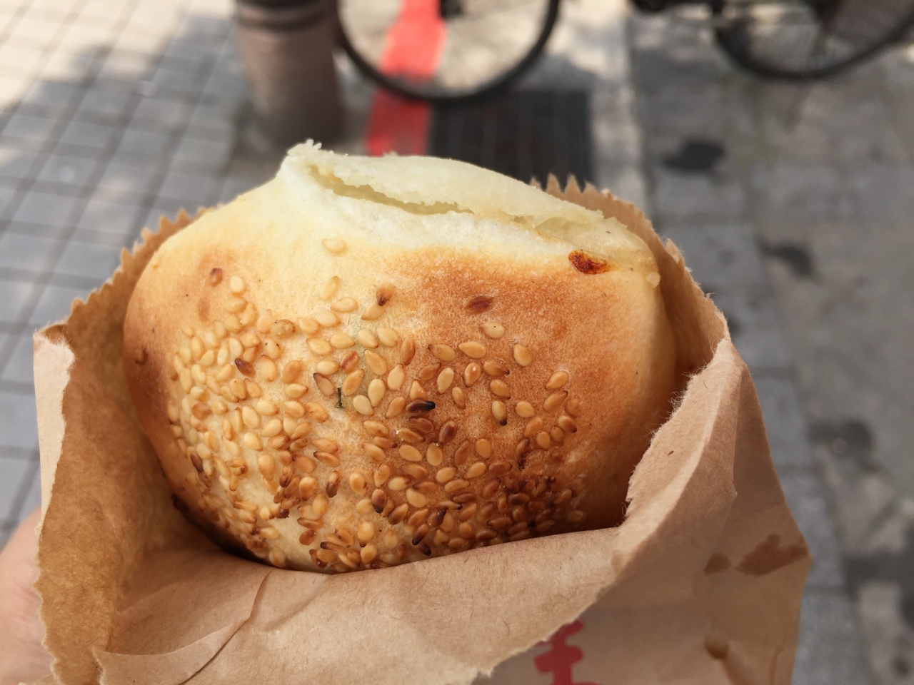 龍山寺近くの細くて薄暗い路地にある有名店で、前回は順番札をもらって指定の時間に受取に行ったのですが、今回13:30過ぎに行くとすぐに買えました。4月の台北はやや暑いといっても25℃ちょっとだと思いますが、何故か順番待ちがありませんでした。そのせいかどうか、胡椒餅の外側の皮が気持ち固めの気がしましたが、中はアツアツでおいしくいただきました。