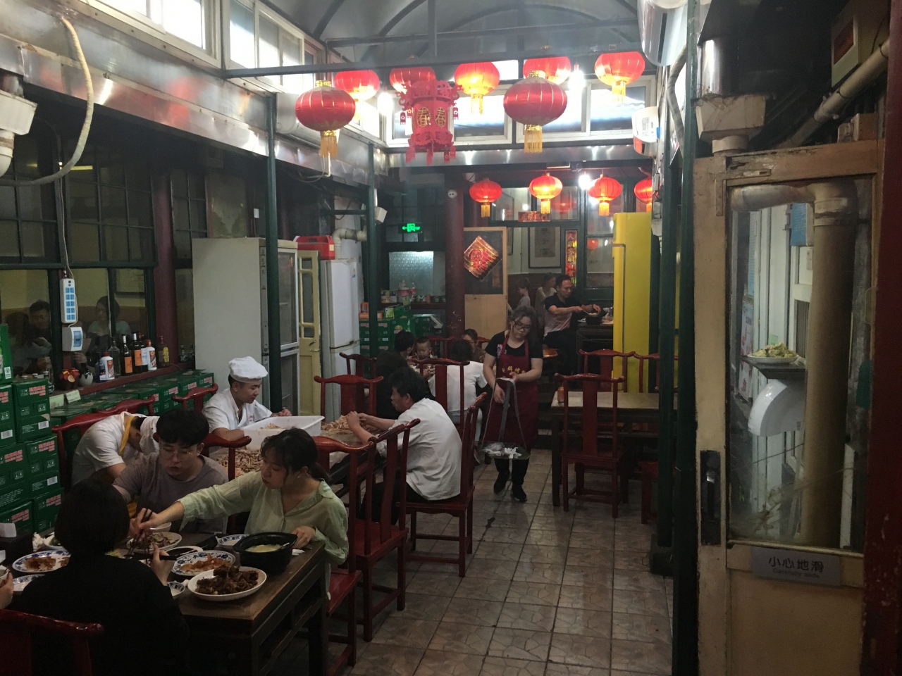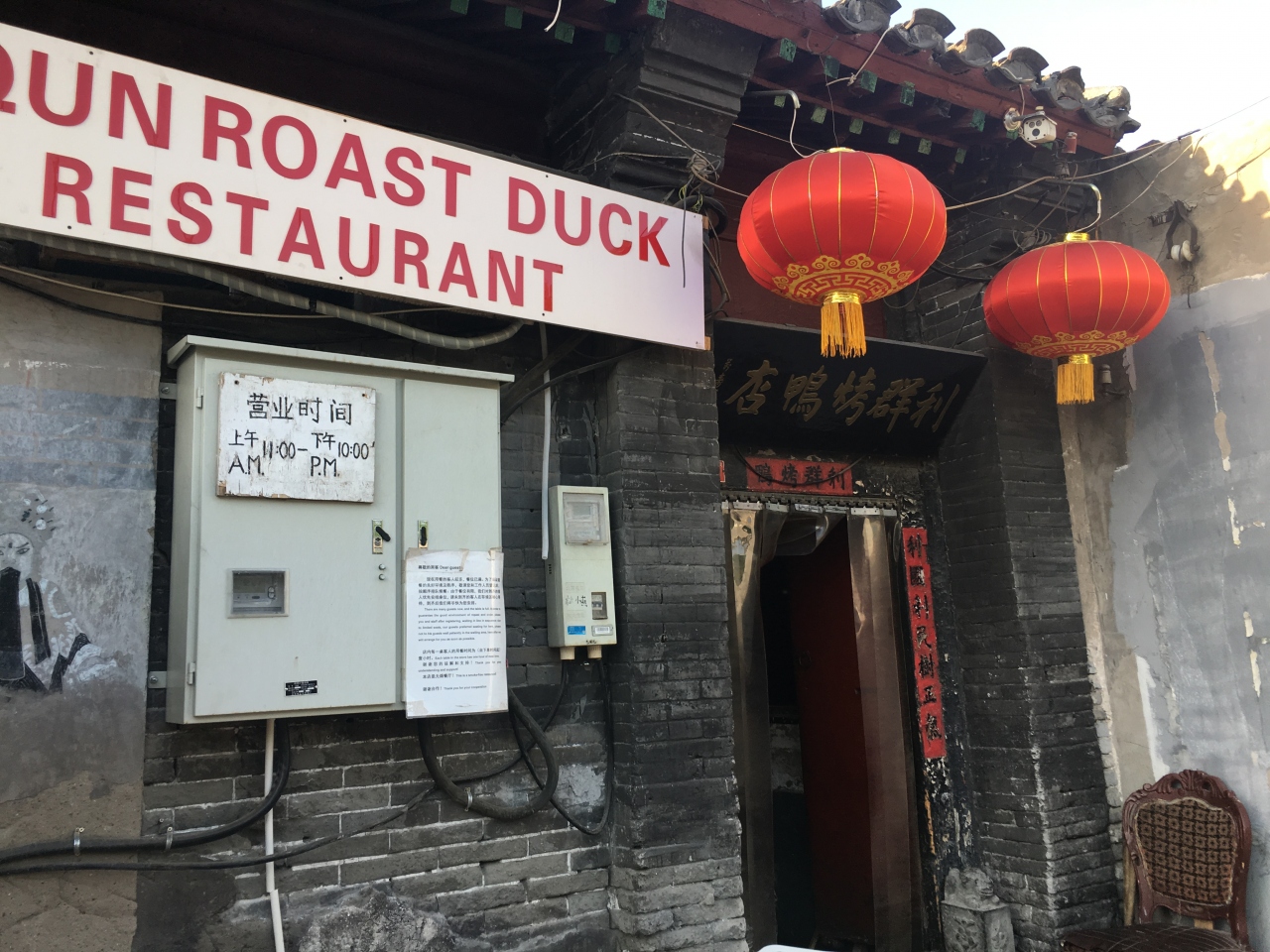 おいしい北京ダックが食べたいと思い、いろいろ探しました。ネットの書き込みやガイドブックにあったので、この店だ!と思い、足を運びました。場所は地下鉄「前門駅」から徒歩約十五分。かなり迷いましたが、いろいろな人に道を聞いてやっとたどり着きました。店は100年以上前の四合院を改築したとのこと老舗の風格が漂います。入り口に入ってすぐに大きな窯があります。家族5人だったので、個室に通されました。北京ダックは肉厚で皮もぱりぱり。自家製のテェンメンジャンもとてもまろやかで、あっという間に平らげてしまいました。セットで注文したので野菜のおかずも付きましたが、どれもとてもおいしくいただきました。北京に行くことがあったらまた寄りたいです。