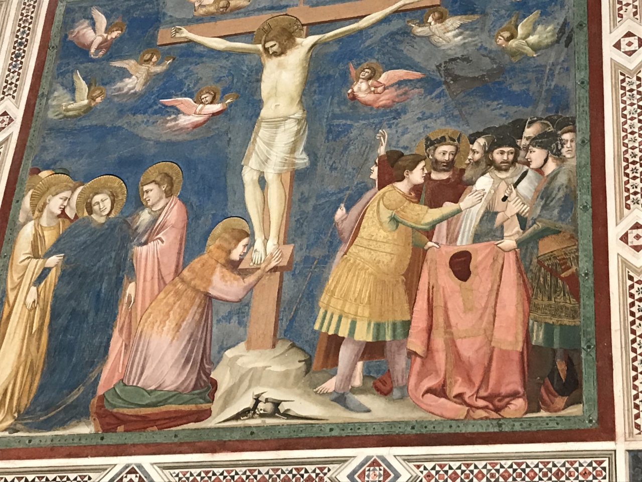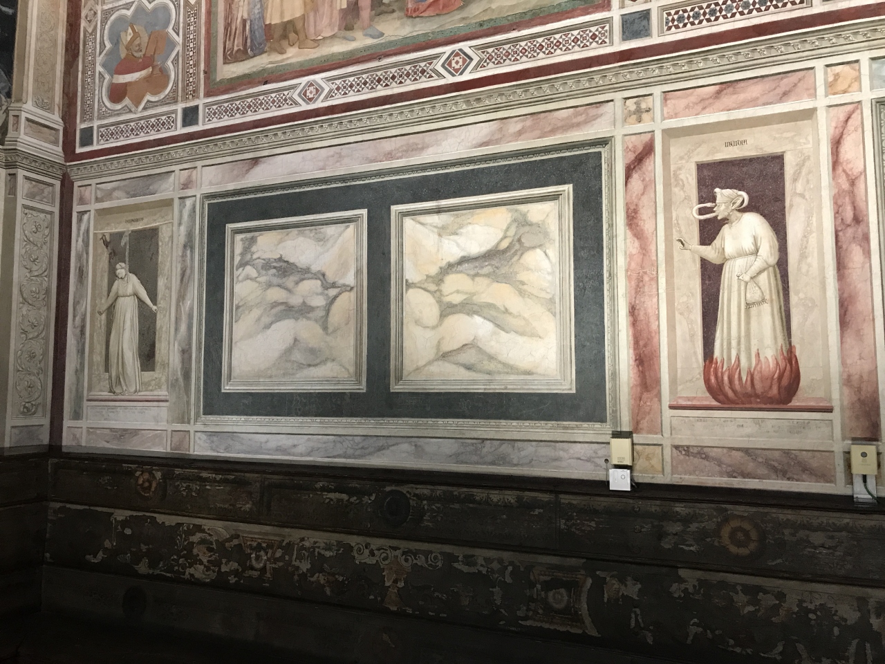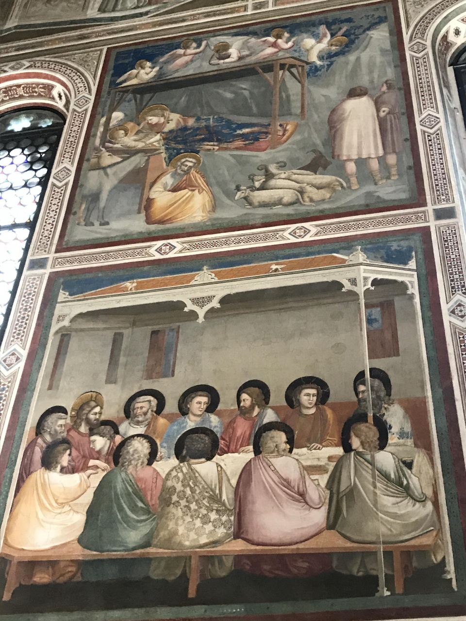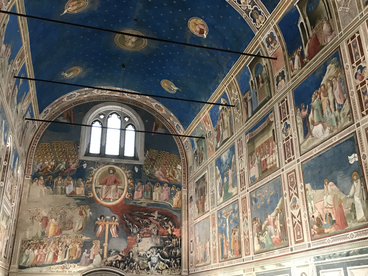 西壁に「最後の晩餐」左右の壁に「聖母の生涯」が12面「キリストの生涯」が25場面、東壁に「大天使ガブリエルを遣ます父なる神」そして、下の部分に「美徳と悪徳」の14擬人像が描かれています。