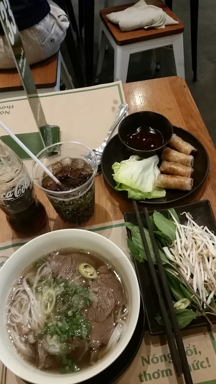 牛肉のフォーと揚げ春巻きとドリンクですが、フォーは確かに美味しかった。