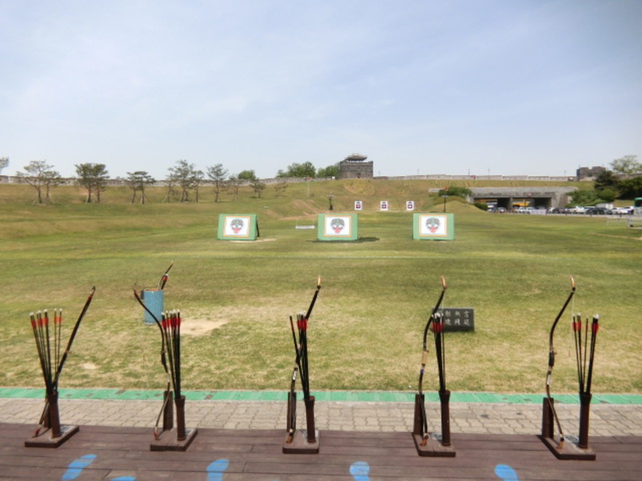 水原華城を観光した際、時間があったので韓国式弓道を体験してみました。思ったより力が必要で、けっこう難しかったです。なかなか遠くまで飛ばせず、的には届きませんでした。しかし、貴重な経験ができて良かったです。また機会があれば、やってみたいです。