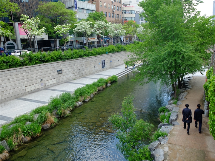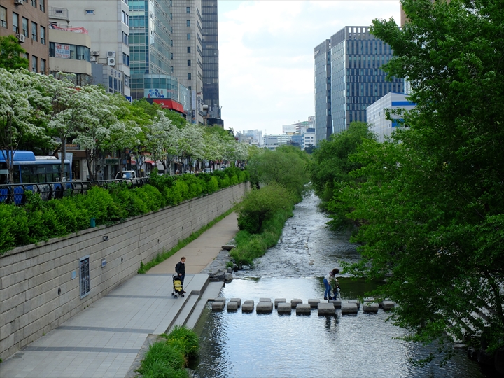 復元事業で現代によみがえった川。ソウル中心部を流れています。