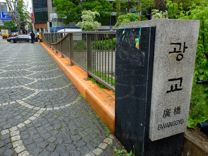 私は、明洞から仁寺洞、さらに北村(プクチョン)エリアを徒歩で回った際、廣橋という言う橋から見下ろしてみました。