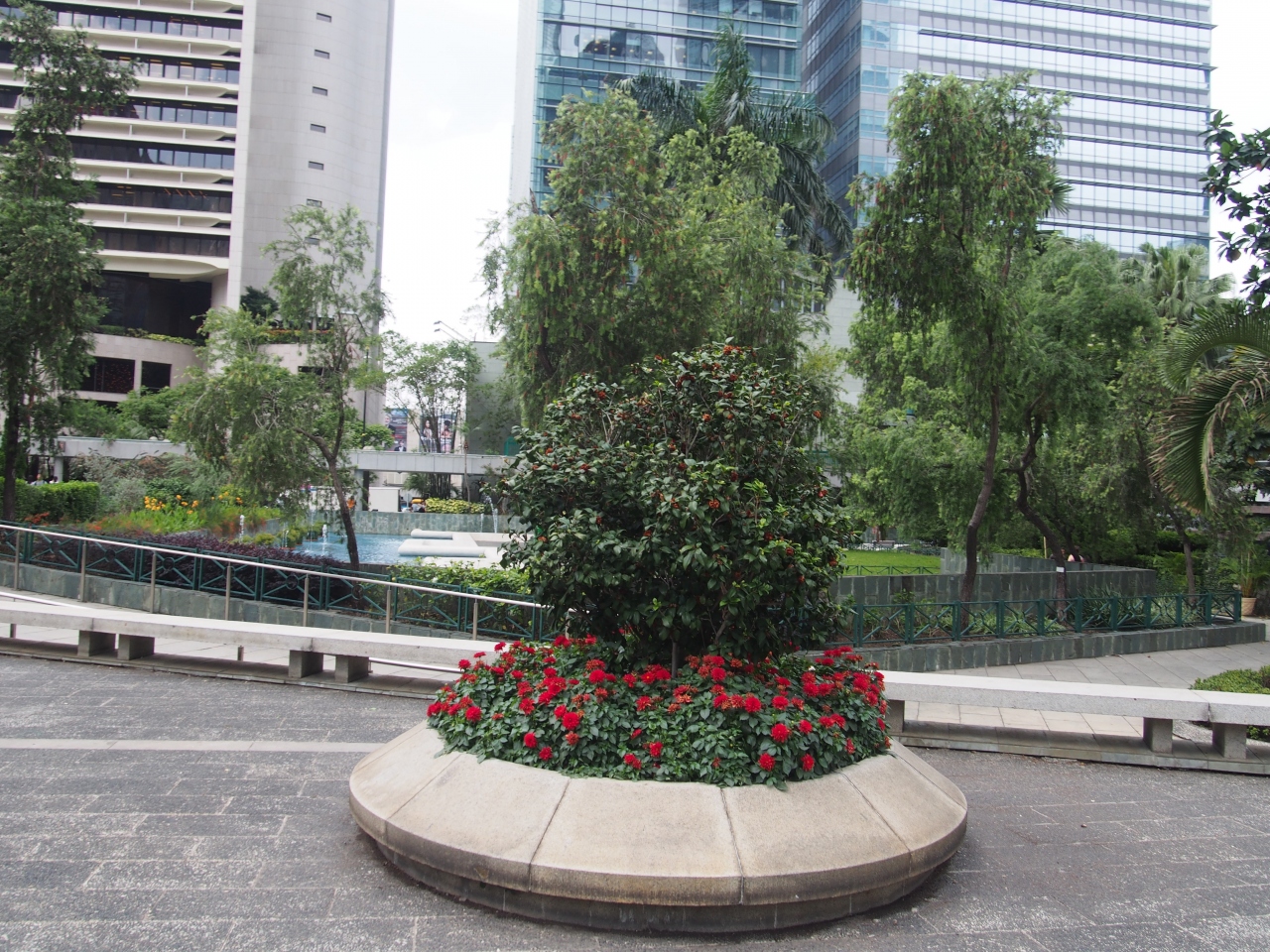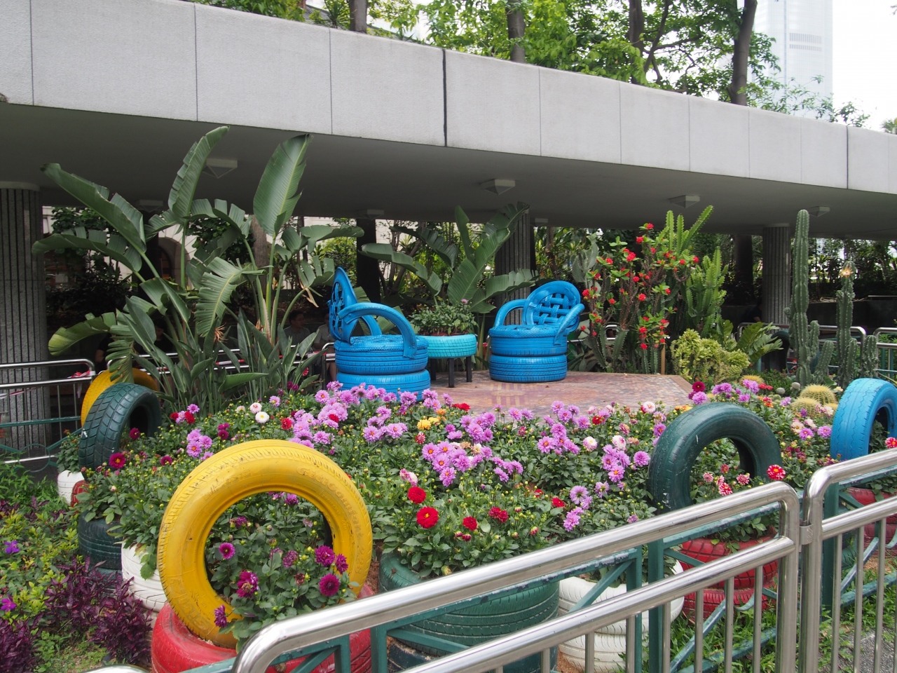 MTRセントラル駅出口直結の公園。コンクリートの広場の周辺に草木が植えられており、いわゆる都市公園です。屋根のある場所には多くの人が集まっていましたが、日向の広場は公園というより駅の出入りに使われる通路(道路)のようで、特に見どころがあるわけではありませんでした。