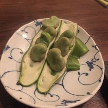 普段 日本の料理店では食べないそら豆・アワビなどをチョイス。ホクホクの豆・軟らかいアワビ 最高です。
