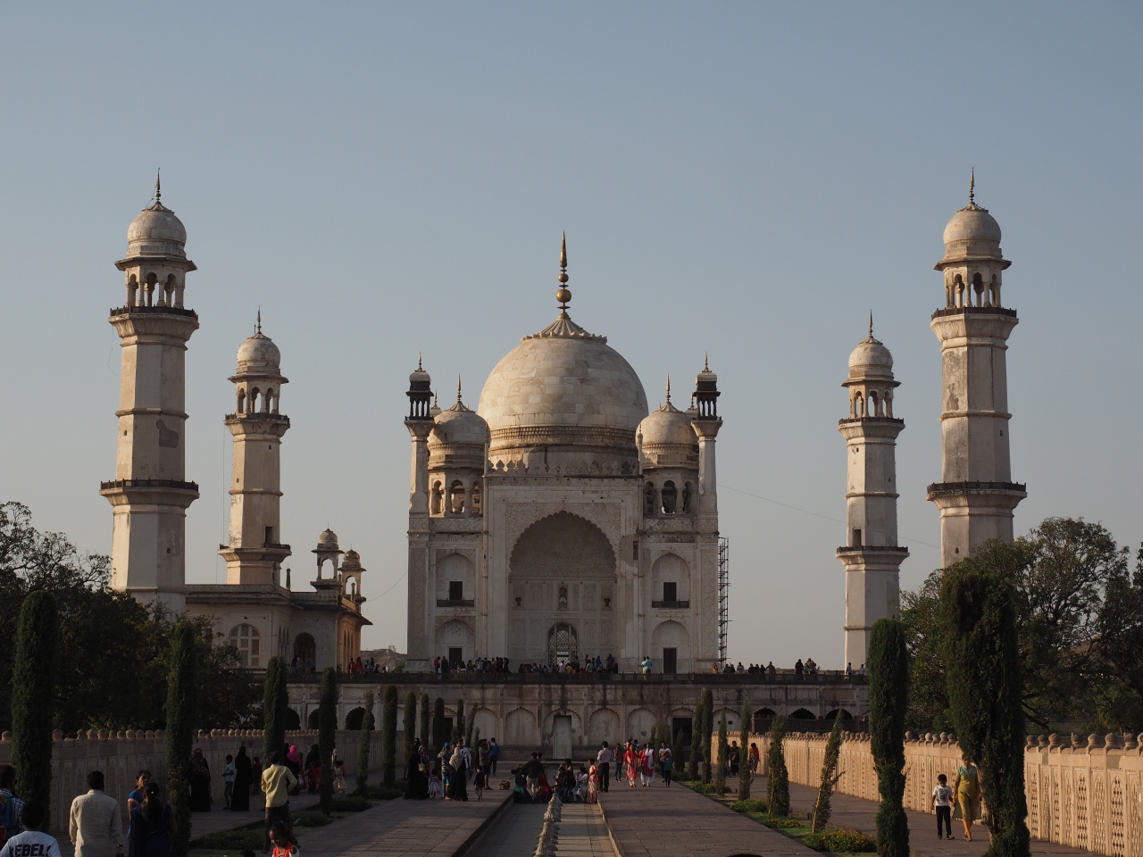 アウランガーバード市内の北部にある、タージマハルのミニ版です。タージマハルに行ったのが相当昔なので、記憶がやや怪しいんですが、小さいだけじゃなくて妙にほっそりしているような気がしました。外国人観光客よりもインド人観光客に人気のスポットらしく、たくさんのインド人観光客がいました。
