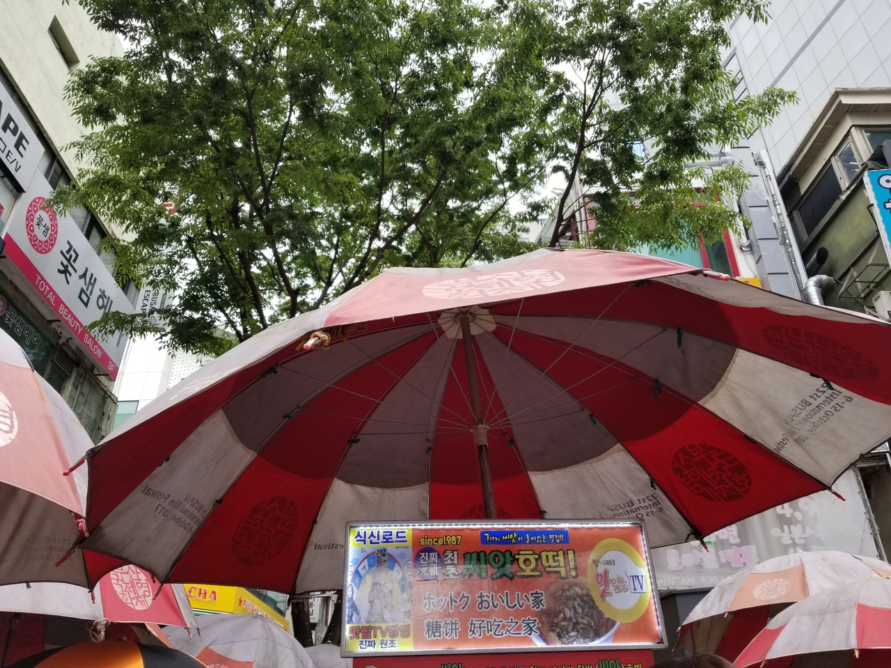 有名芸能人も食べたと有名なシアホットクの屋台があることで有名な広場です。同じようなシアホットクの屋台がたくさん並んでいますが、ガイドブックにも載っている有名店は行列ができているのですぐわかります。私は行列のできていないお店のものをいただきましたがひまわりの種やナッツが入ったホットクは香ばしく美味しかったです。いつか有名店のものも食べてみたいです。