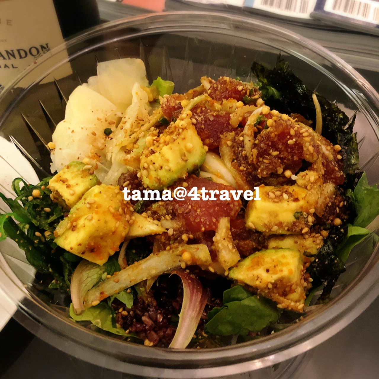 大きめにカットされたアヒ(まぐろ)とアボカド、玉ねぎがごま油と醤油で和えられており、海藻と韓国海苔がいいアクセントに。種類は色々あるけど、〝ショウユアヒ″が割とスタンダードだと思います。