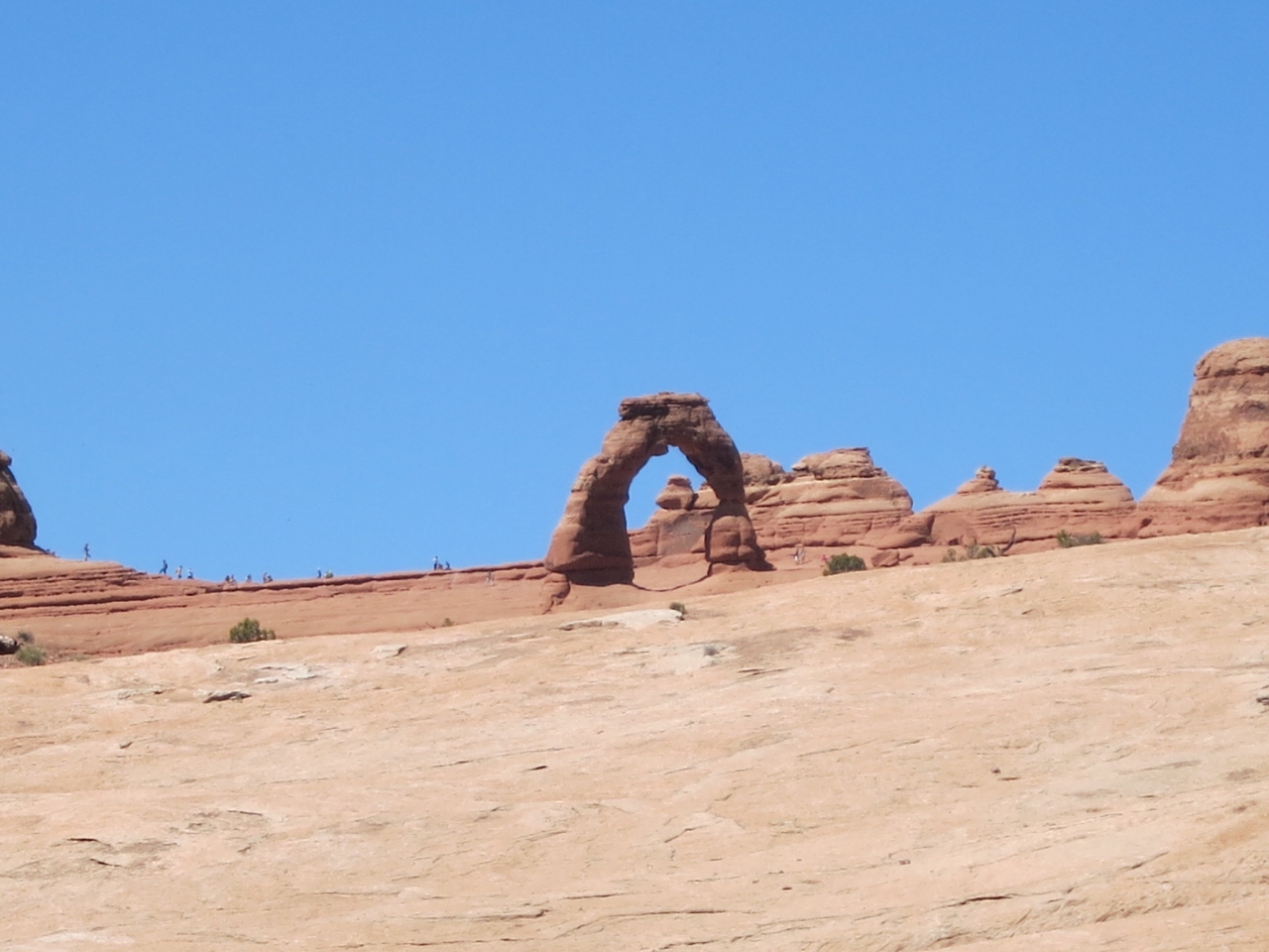 アーチーズ国立公園の中でもメインに数えられるデリケートアーチ。歩いてゆうに片道1時間ほどはかかります。人も多いですが、ここまで時間がかかると思わず、近くまで行くのは断念しました。遠くからでも、遮るものなくアーチは見えますよ(笑)