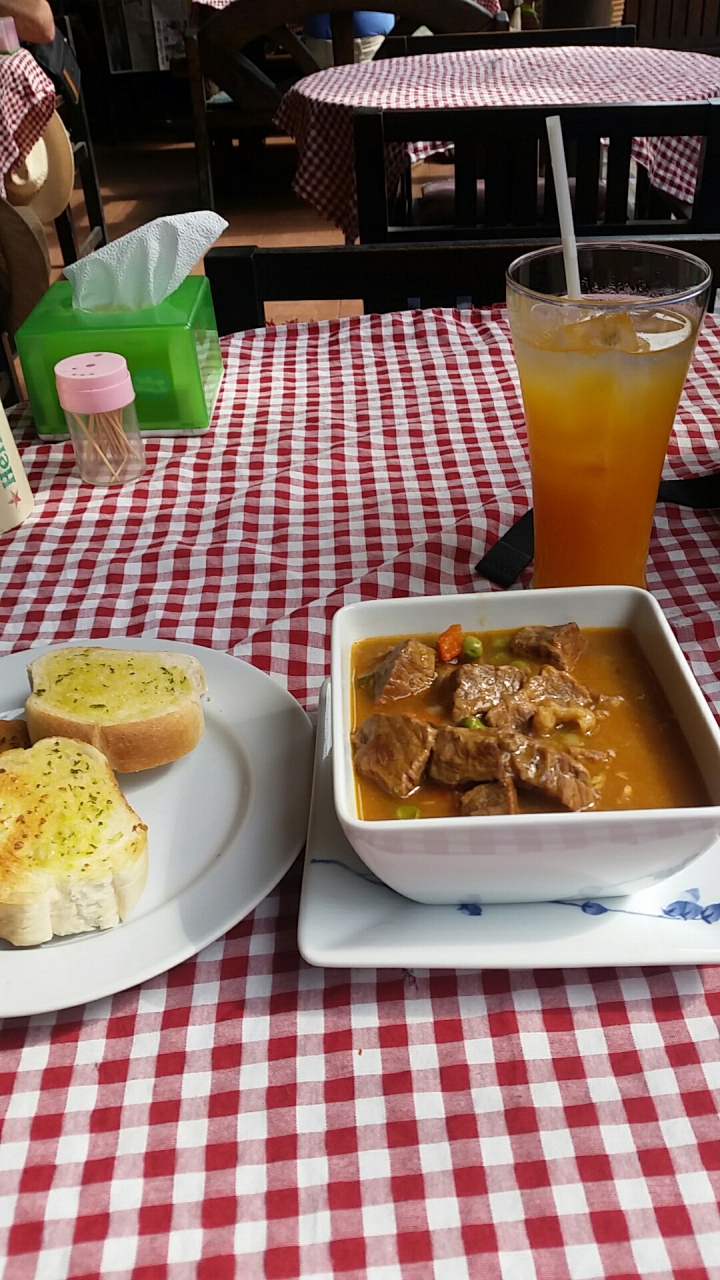 ネット情報では、ビーフシチューが美味しいってことで、朝から注文。少し時間がかかったが、割と美味かった。ガーリックトーストもついてるんで、朝食としては十分でした。