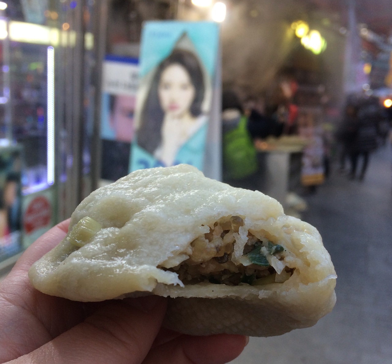 店内で麺類なども食べられるのですが、やっぱり食べ歩きでのマンドゥが一番!