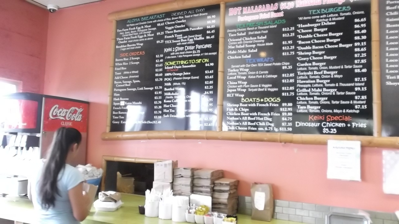 ハワイ島北東部のワイピオ渓谷見学後に立ち寄りました。「TEX テックスドライブイン」という名称で国道19号の沿道にあります。ここの呼び物は何と言っても「マラサダ+フィリング」。人気の味はババリアンクリームそれからマンゴーとグァバで最高にうまい。女性の作業中の様子も観察できます。