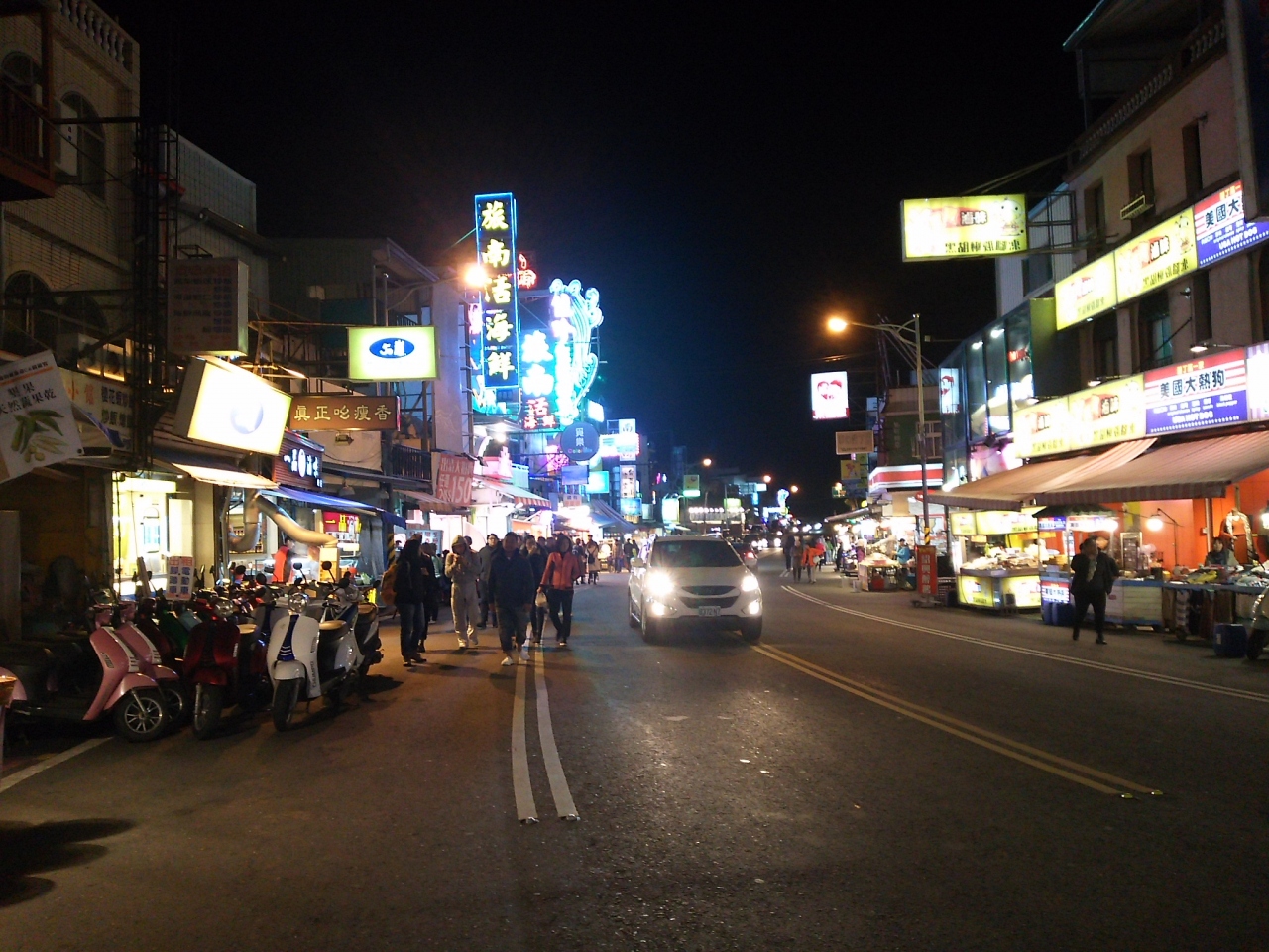 夜になると道路の左右に屋台が並んでいるので、車に気をつけないといけない。という認識で行ってみたら、1月はオフなのか車も少ないし人も少なかったです。たぶん屋台も少なかったように感じました。空いてて見やすいから好きですけど。台湾の夜市としては特殊な雰囲気です。広いからかな?