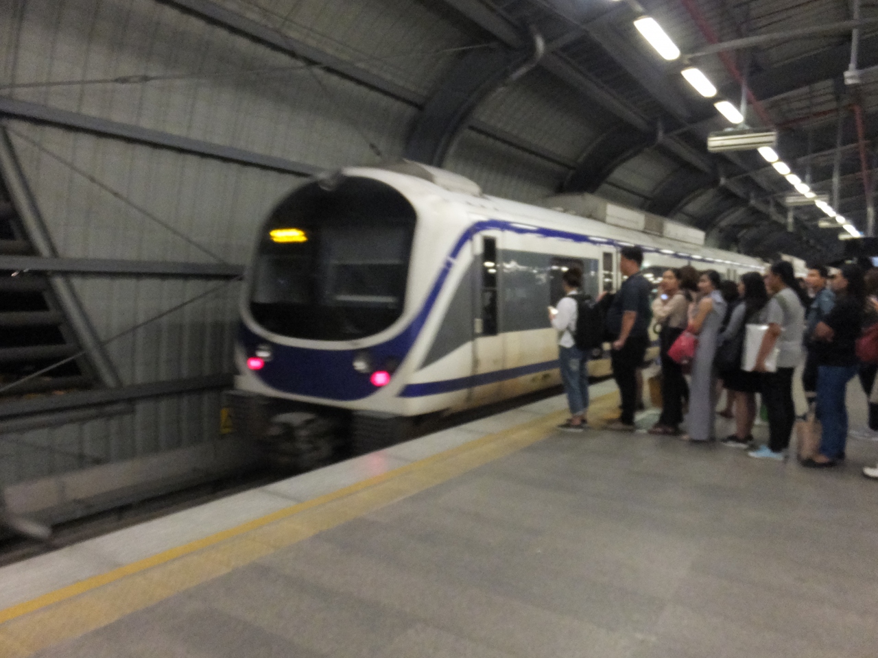 スワンナプーム空港と都心を結ぶ電車で、渋滞を気にしなくて時間が読めるので便利です。但し、いつもかなり混雑してます。金曜夕方7時過ぎにアソーク駅から空港に向かった時は、電車2本見送ってようやく乗車できましたが、動けないほどの混雑でした。大きな荷物を持って乗車するのはお勧めしません。時間に余裕をもって、始発から乗車するのがよさそうです。